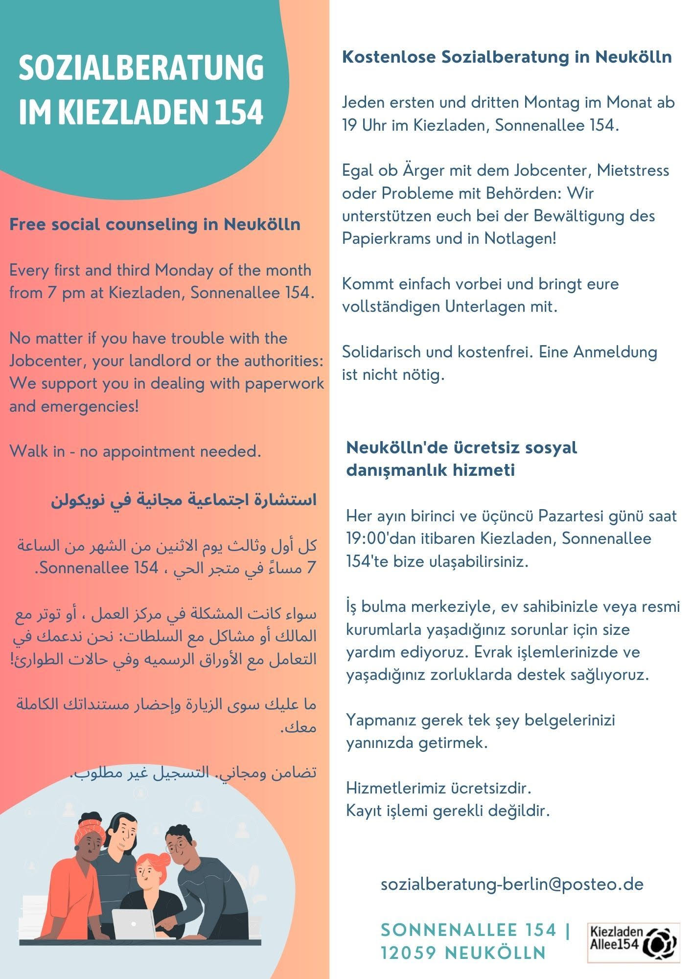 Einen mehrsprachigen Flyer findet ihr außerdem im Kiezladen oder hier.